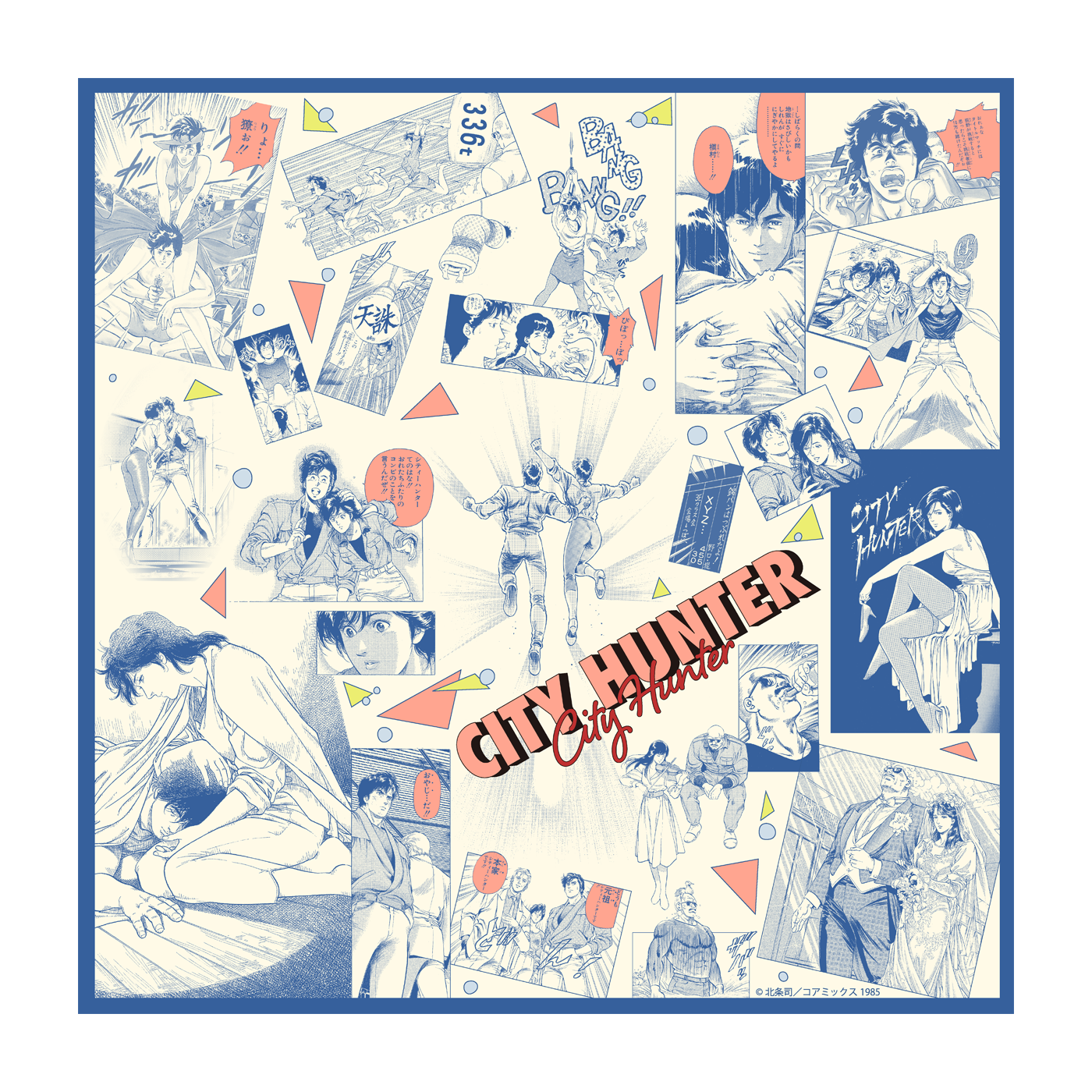 シティーハンター大原画展描き下ろしの獠&香柄と、シティーハンターの名シーンを集めた名シーン柄の大判ハンカチです。