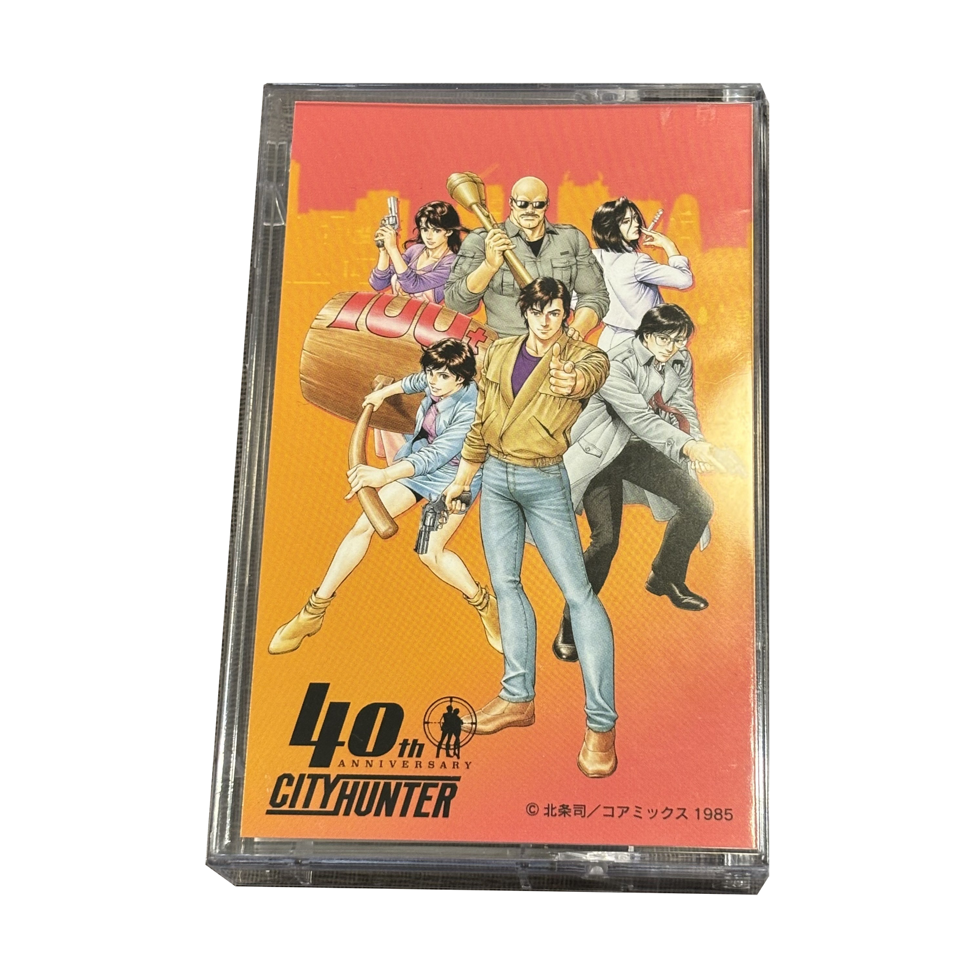 シティーハンター大原画展のメインビジュアルと40thビジュアルデザインのカセット風メモ帳です。